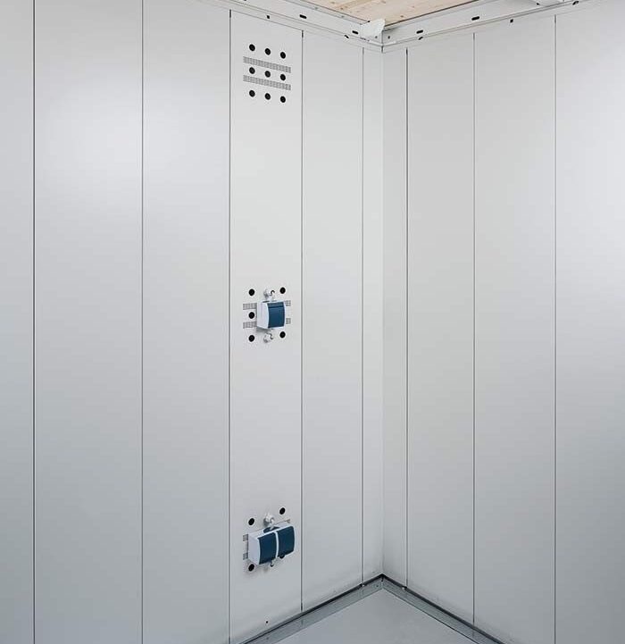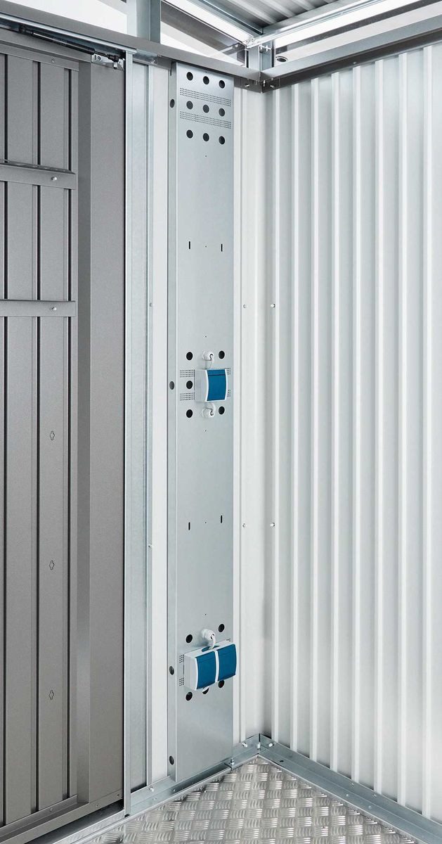 Das Biohort Elektro Montagepaneel ermöglich eine dezent verdeckte Kabelführung und einfache Montage von Schaltern und Steckdosen (ohne abgebildete Elektroausstattung) in Ihrem Gartenhaus.